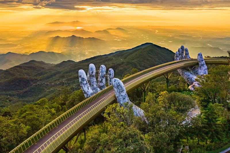 - Bà Nà Hills: Check-in Cầu Vàng – biểu tượng du lịch Việt Nam và tận hưởng khí hậu bốn mùa trong một ngày.