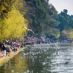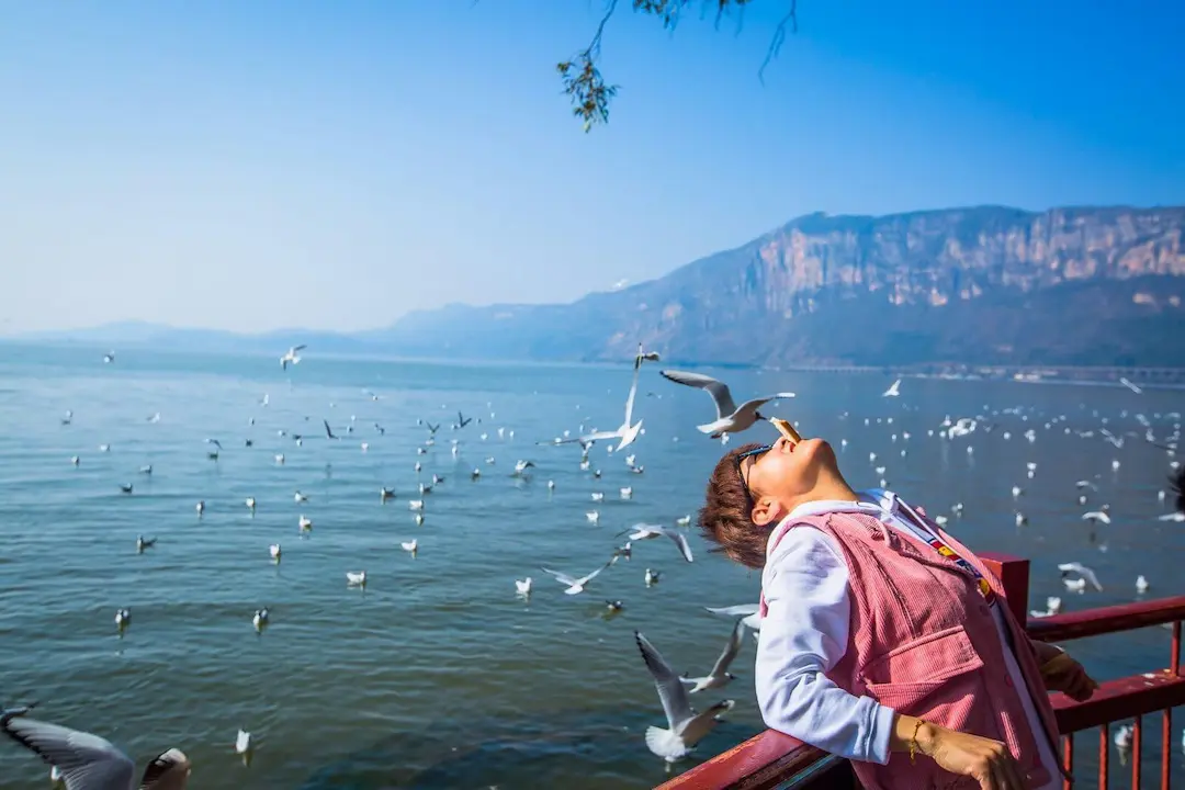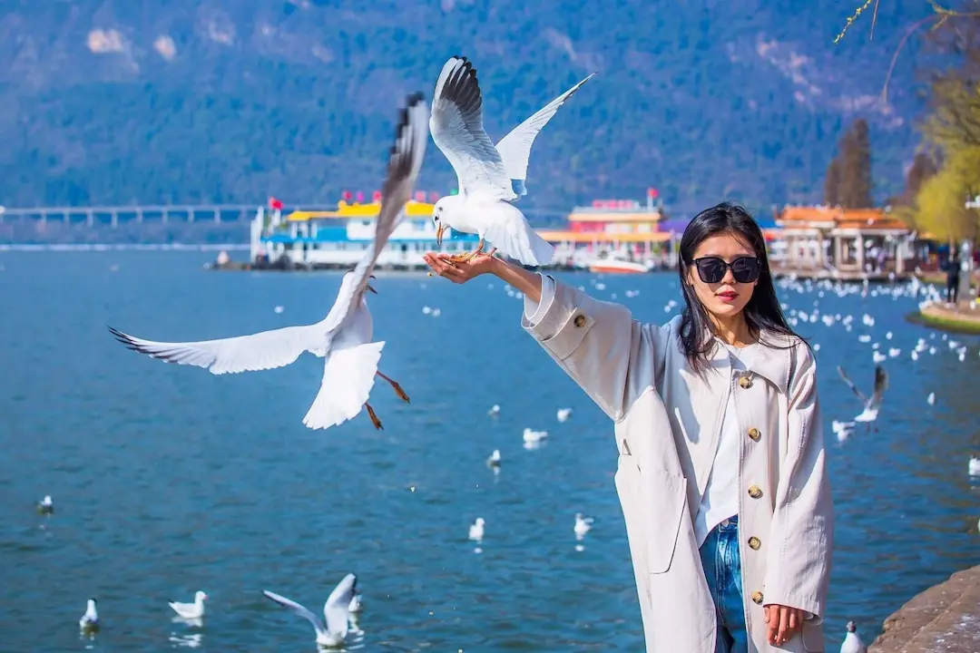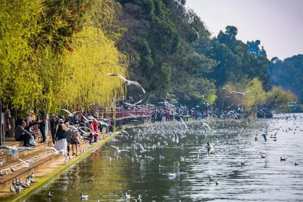 Tại Côn Minh – thủ phủ Vân Nam, du khách sẽ được trải nghiệm đặc sắc: cho chim hải âu ăn tại Hồ Điền Trì. Đây là một hoạt động hấp dẫn, vừa gần gũi với thiên nhiên vừa mang đến cảm giác thư thái, đúng chất của “thành phố mùa xuân” quanh năm khí hậu ôn hòa.