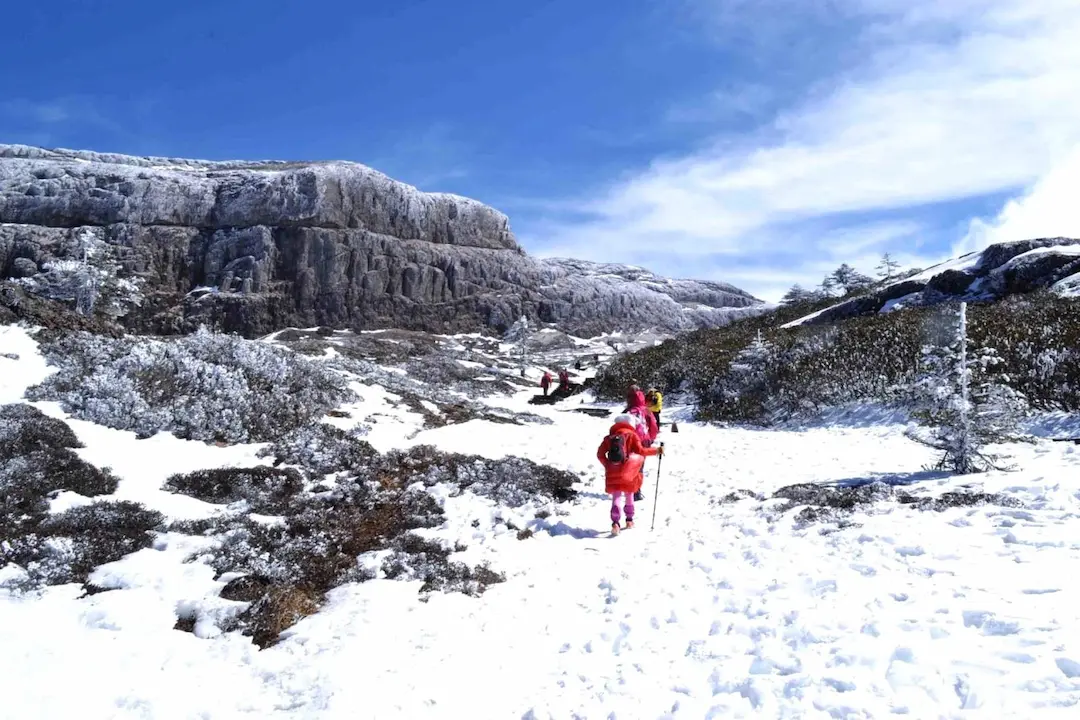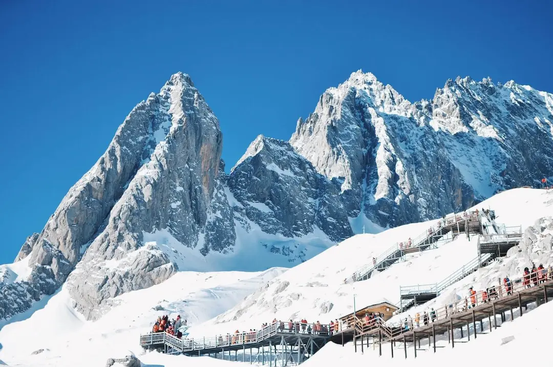 Đỉnh cao của hành trình chính là Núi Tuyết Kiệu Tử, được mệnh danh “Điền Trung đệ nhất sơn”. Với đỉnh núi quanh năm phủ tuyết trắng, không khí trong lành và cảnh sắc hùng tráng, nơi đây là điểm đến lý tưởng cho du khách yêu thiên nhiên và khám phá những kỳ quan thiên nhiên của Vân Nam.
